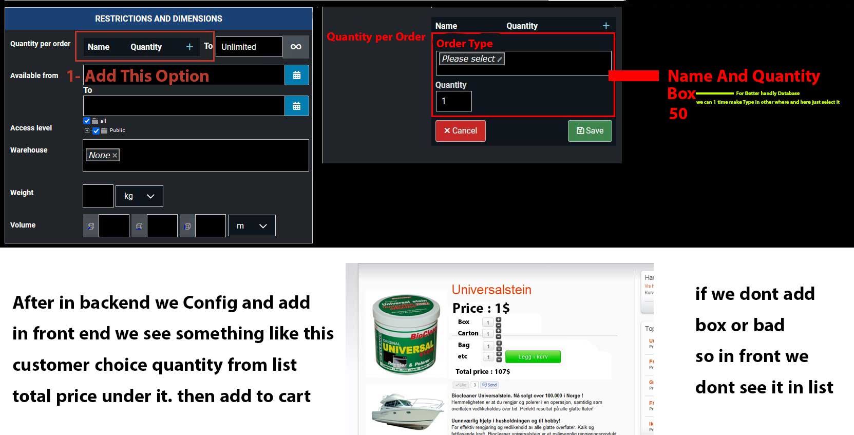if i want sell 100 ( 1 carton ) + 30 ( 3 box ) then ? i cant because i have not option for it