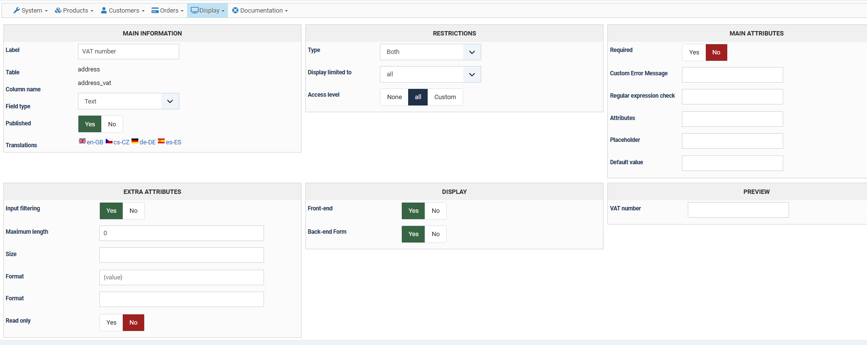 - We use only VAT format check (Configuration - Main - VAT number check - Format check)
