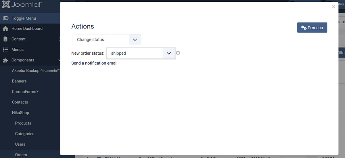 Usually, the status of an order being changed to "shipped" happens when the merchant manually changes the status of the order in the backend of the website. When he does so, there is a checkbox he can check to send an email notification to the customer. If that checkbox is checked, the "order status notification" email will be sent, provided it has not been disabled.