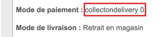 1. En fait, le "collectondelivery" c'est le nom de dossier du plugin. Cela indique que la méthode de paiement qui était liée à la commande a été supprimée (ou en tout cas qu'il ne la trouve plus), même si le plugin correspondant est toujours installé.
