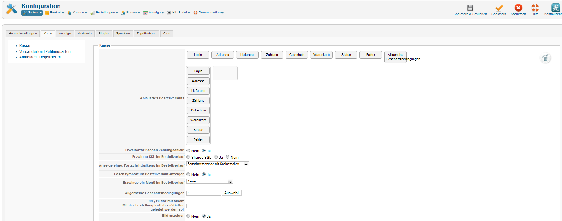 - Your checkout workflow ("Hikashop->System->Configuration->Checkout")