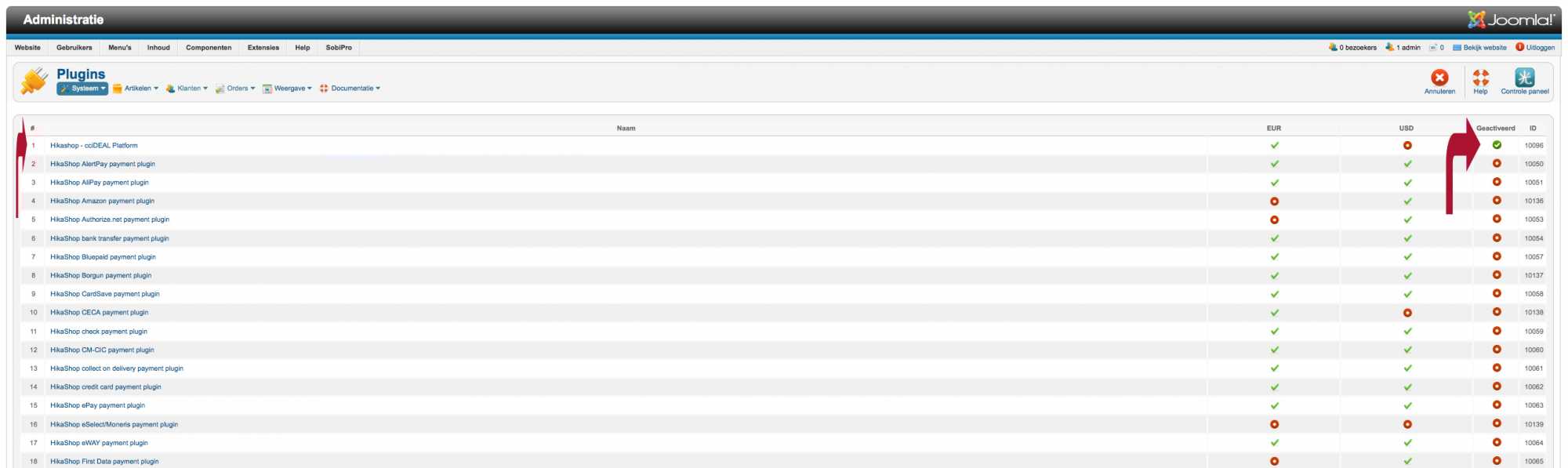 I made an update to Hikashop 2.2.2 starter and Joomla 2.5.14; I use iDeal Platform for Ideal payments version 2.7.3 but after this update I cannot make a payment method (iDeal) or make changes in this plugin.