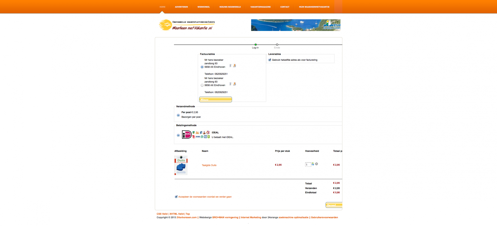 Ok, done and the logo off iDeal is showm on the site. However I can't go to the next step when I push the button "next" (volgende in Dutch).