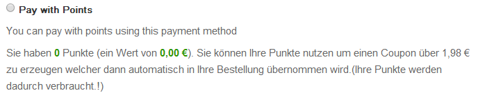 You can see clearly that it says that the user has 0 points which corresponds to 0,00 €.