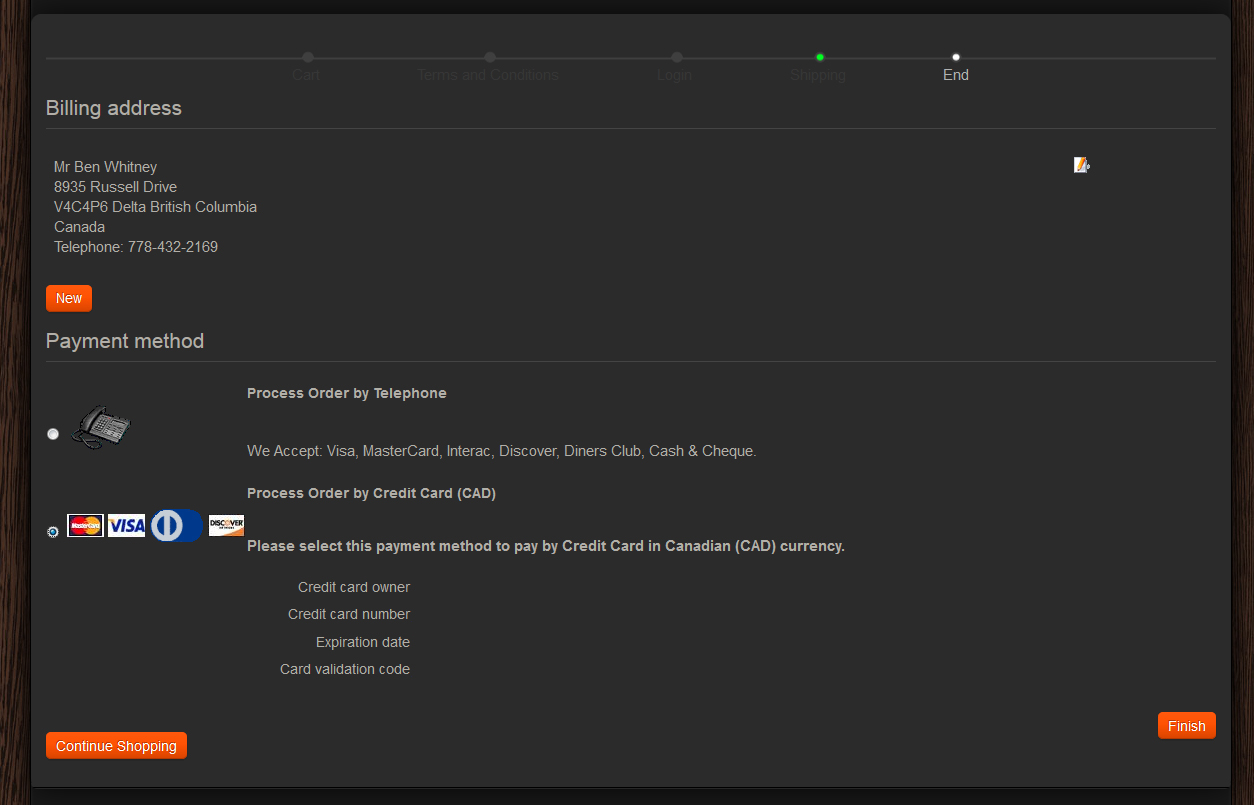 Note: You will need to switch the currency to CAD in order to see the Visa option (I haven't setup the USD payment option yet).