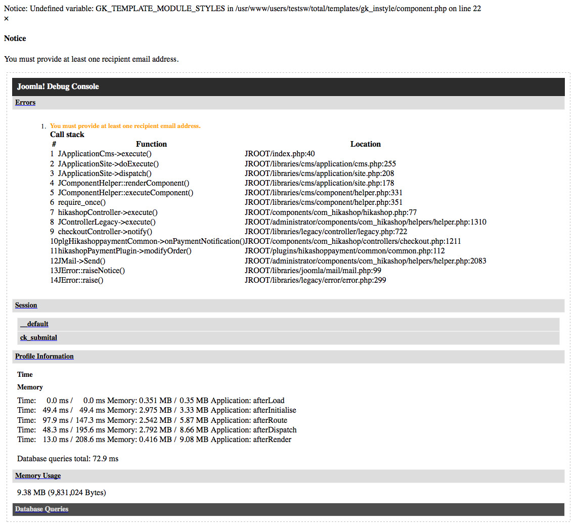 Notice: Undefined property: plgHikashoppaymentCommon::$payment_params in ...plugins/hikashoppayment/common/common.php on line 25 Fatal error: Cannot pass parameter 1 by reference in ...plugins/hikashoppayment/common/common.php on line 111