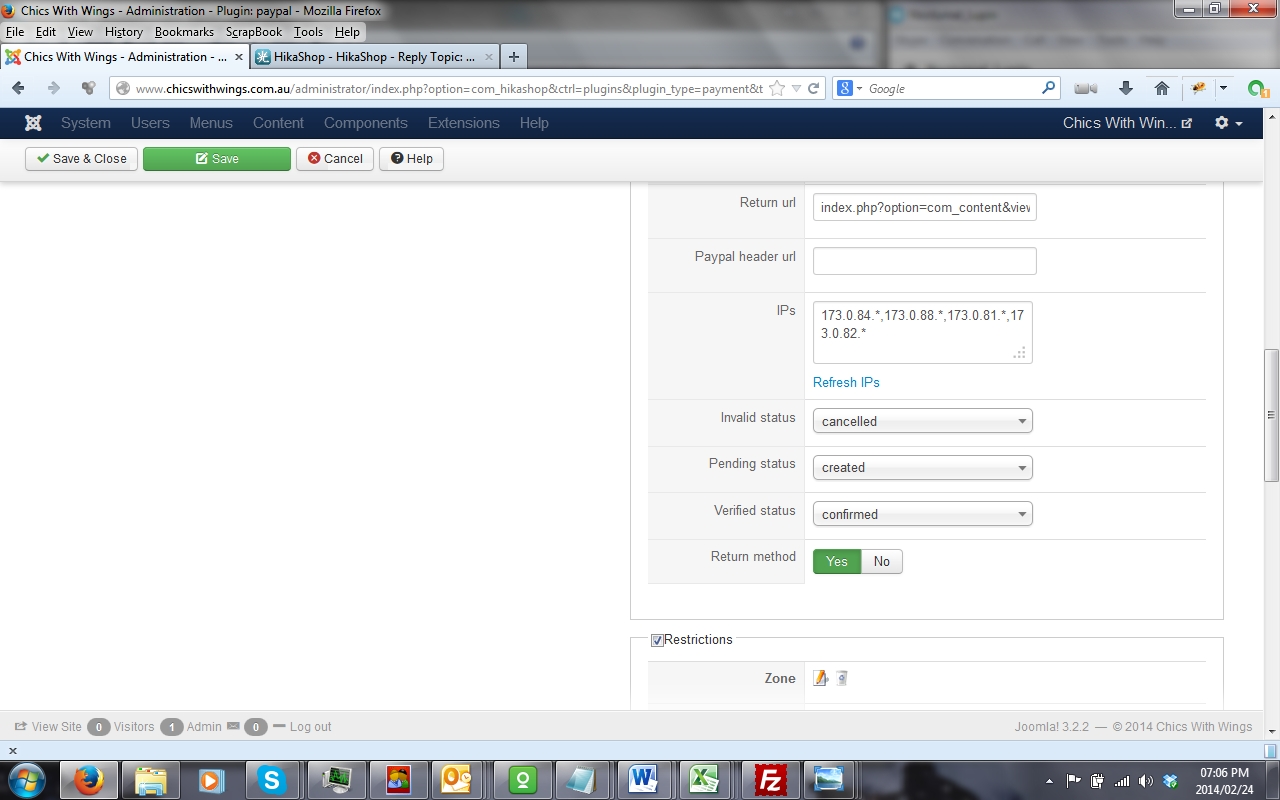 The order got paid for at paypal, and is showing as 'confirmed' in the hikashop orders section. I have taken the screenshots of my paypal configuration.