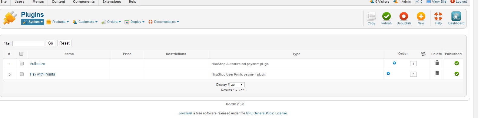 -- HikaShop version -- : x.x.x