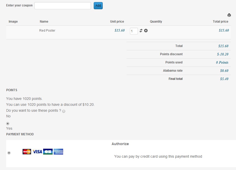 This new step will allow your customer to see the number of his points and choose if he want to use them or not for this order.