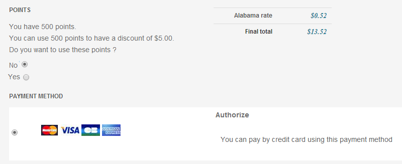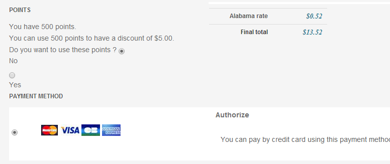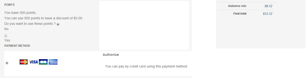 There is currently no CSS for the user points section in the HikaShop checkout.