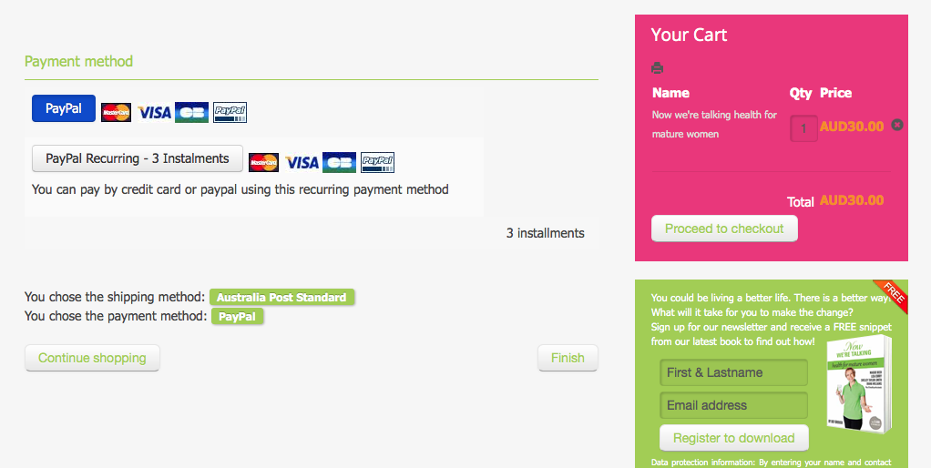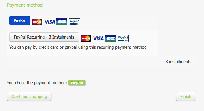 Proceeding further I get the following screen which is confusing because I see two payment options, the normal paypal one and the other one for instalments (which they should not see at this point of time because this is just a normal sale.)