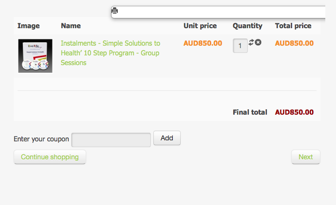 I am ordering a book (no instalments) and I UNTICK the box for the shipment when there is an instalment. see print screen 1