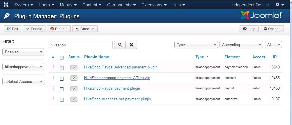 I just updated Hikashop to the latest version. When I enabled the HikaShop Paypal Advanced payment plugin under the Joomla Extensions - Plugin Manager and then went to Hikashop - Payment Methods but the PayPal Advanced payment plugin is not showing as an option. I am currently using Authorize.net which is enabled. I have used the PayPal standard plugin in the past. These are the only two payment plugins that I can get to show under Hikashop Payment Plugins.