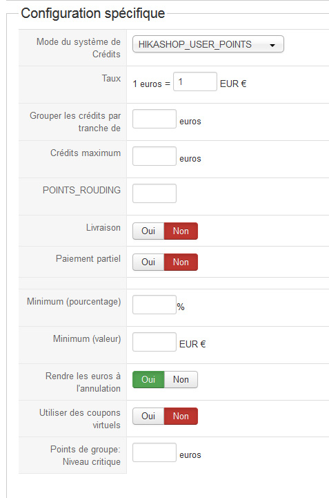 Le plugin "user points" quand il est utilisé en tant que système de paiement à propement parlé (donc sans l'option de coupon virtuel) va créer des coupons HikaShop et les ajouter à la commande.
