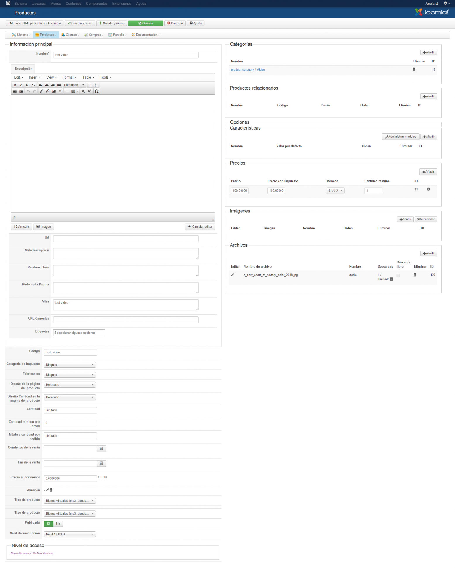 I'm trying to do a virtual product in HikaShop with the following characteristics: