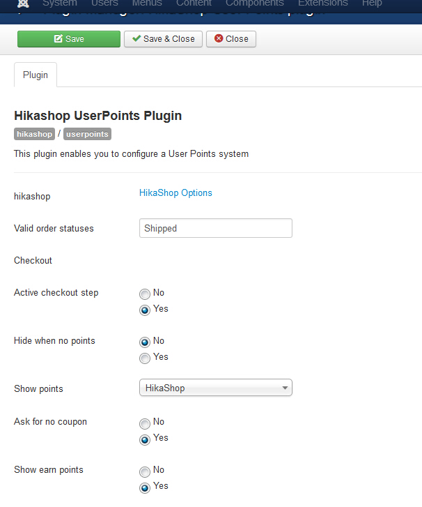 Then edit the plugin "plugins/hikashop/userpoints/userpoints.php" and replace