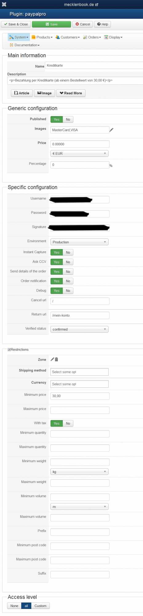 Hi, we want to offer our customers to pay by credit card. For that we want to use the Paypal Pro Plugin. The tested the configuration. For that we have created Password, Username and Signature via "Setting API permits and permissions" in our PayPal Account and added these dates to the plugin. But the ordering process not works if this payment method is selected. It just happens nothing and no error message is displayed. Where is the error? The simple PayPal-PlugIn works fine.