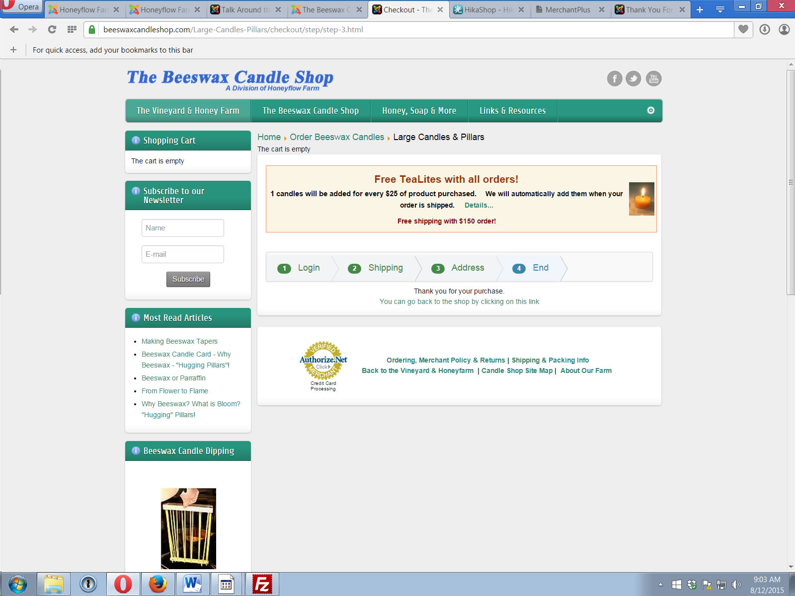4 - Regarding the PHP warning, the order is confirmed, so you should have the "end" page with the Authorize.net data.