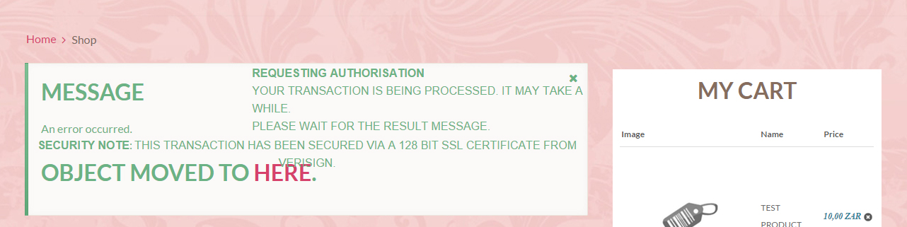 Note that you may verify that the response came from us by calling backoffice.iveri.co.za/Lite/Transactions/New/Authoris e Info .aspx Which returns the original form variables so that you can do your validation. Note that this is not a redirect but a form request and requires that the Hikashop team to add a parameter called merchant trace.