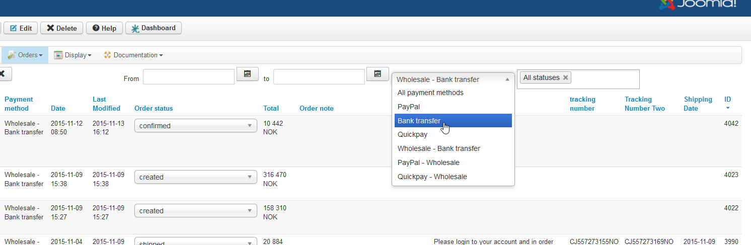 2. For the orders "payment methods" filtering on the orders listing, the issue is that the filtering is done at the plugin level, not at the payment method level. So regardless which payment method you select, as long as it is the same payment plugin, you'll see all the orders of the payment plugin selected. We'll change that for next version for better consistency.