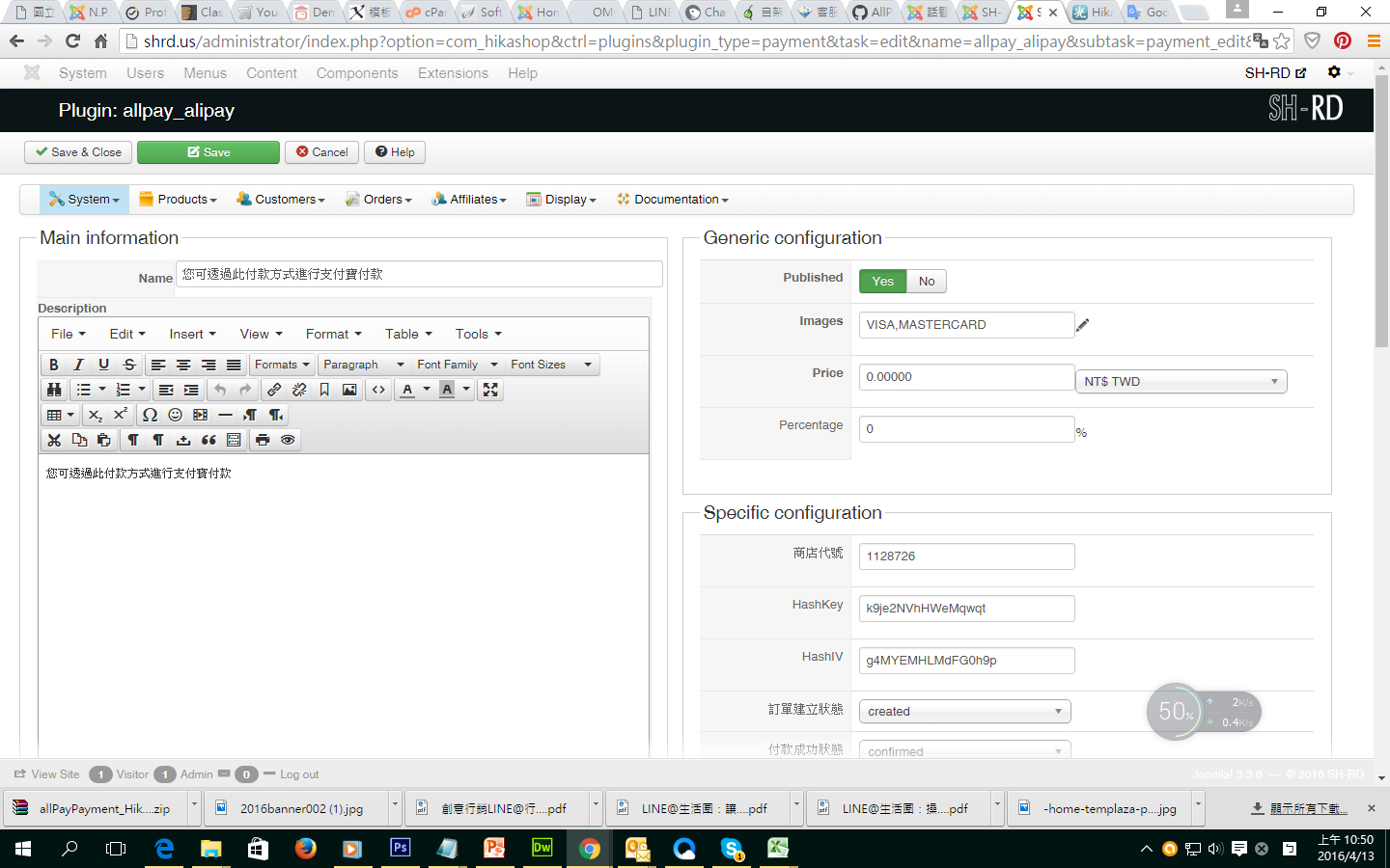 Payment: HikaShop allPay Alipay payment plugin