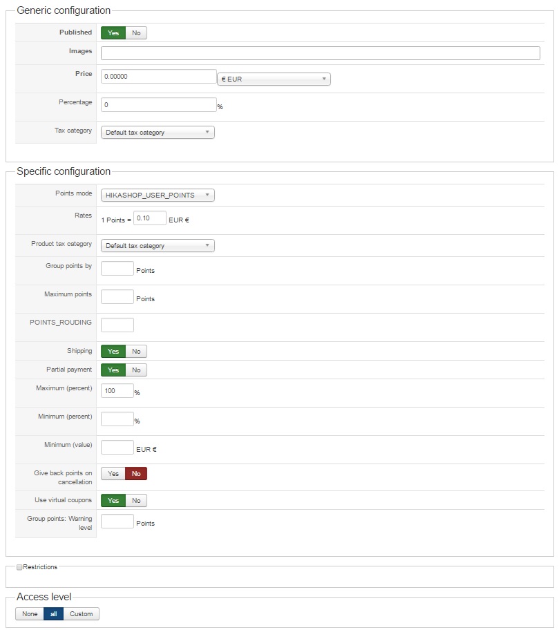 * This is strange because the settings of the user points plugin (System -> Plugins -> Userpoints) are at the Specific configuration: Give points when using some "Don't Give" (See give points when.jpg)