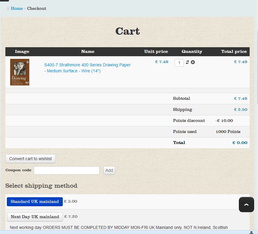 In the cart at checkout, if the user doesn't have points shipping is listed inclusive of VAT (correct).