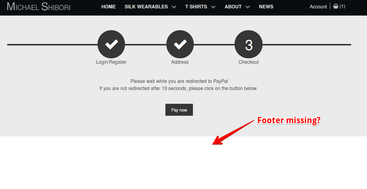 On step 1 and 2 is working fine because the above code doesn't exist, soon as you move to the PayPal page redirection this script is loaded and is breaking all templates.