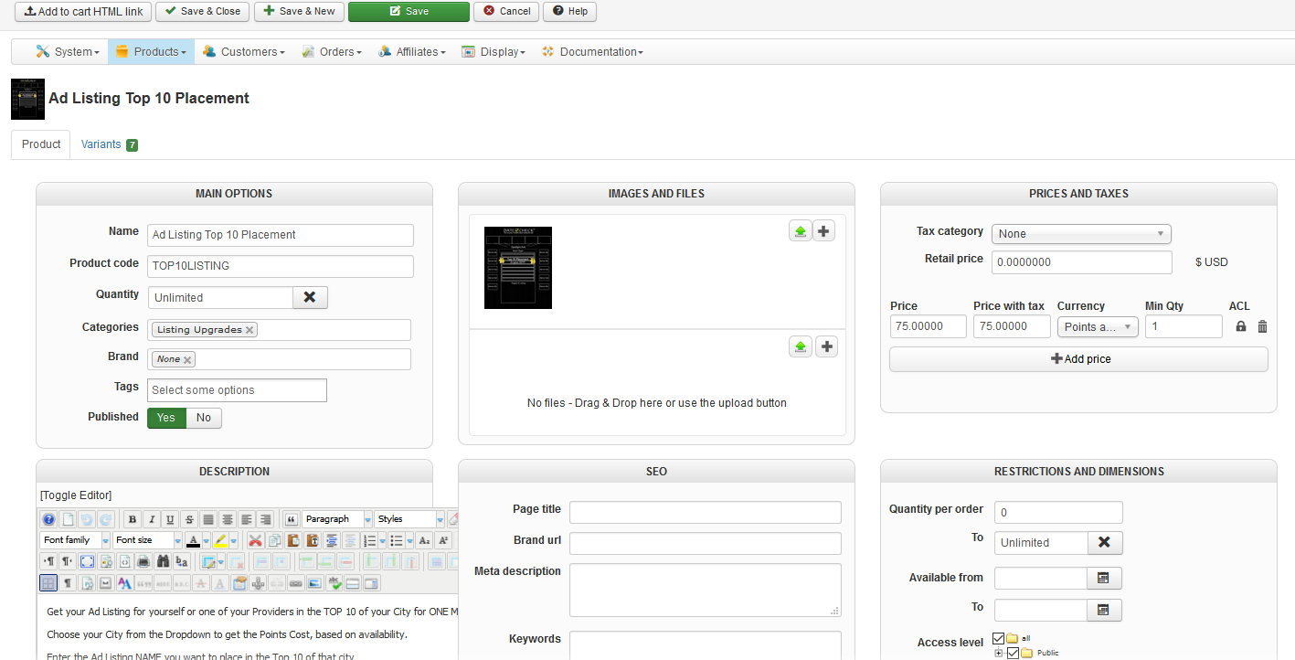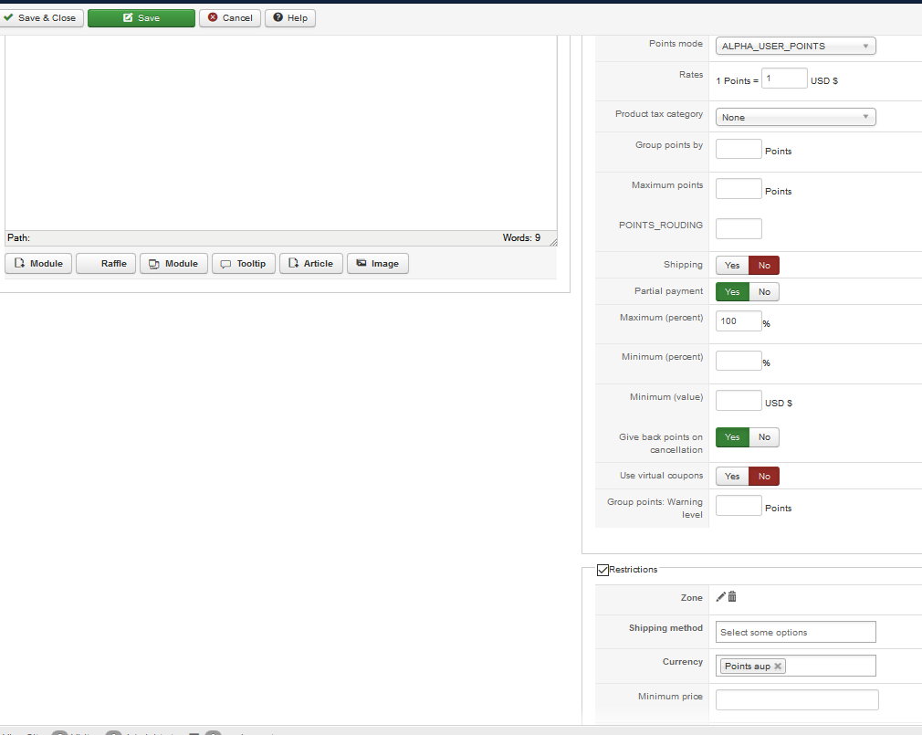 So the customer can choose the fake currency "Points" and the all store will display prices under that currency. But it will also mean that products could not have price and that HikaShop will have to convert prices from "USD" to "Points" (and vice-versa)