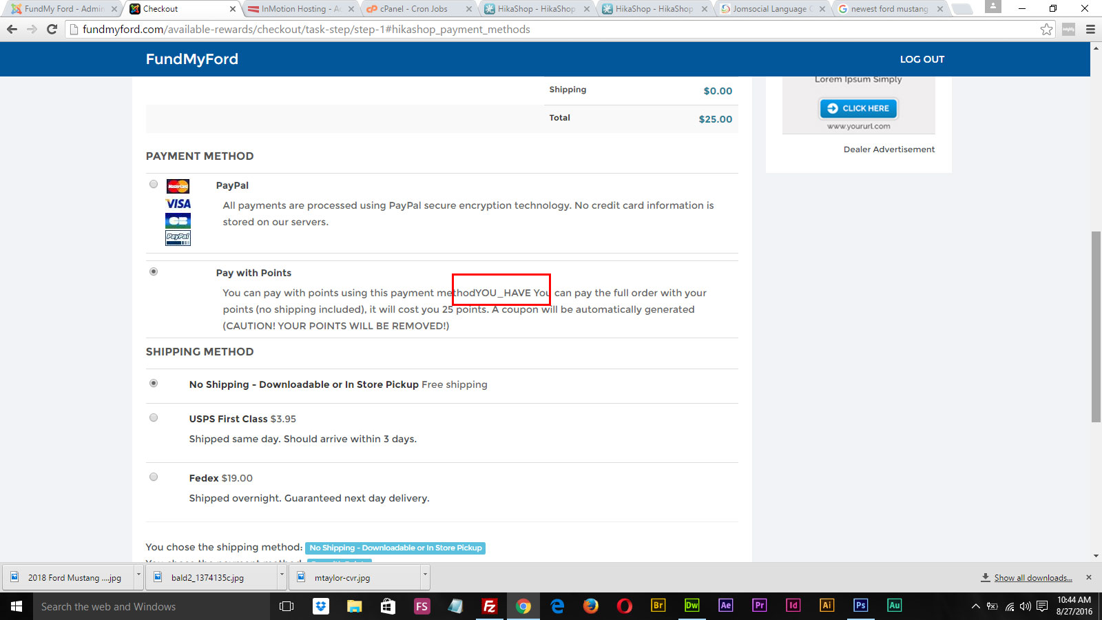 On my checkout process I have pay with points enabled. Hikashop was displaying the appropriate user points to the user, but now it is not. I've attached a screen shot. Also, I would like to know what language file to modify and the directory path it can be found. Thanks in advance for your help!