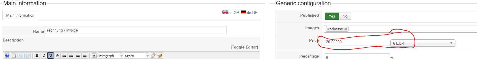 I have defined the payment method "rechnung/invoice" at the price of EUR 20.