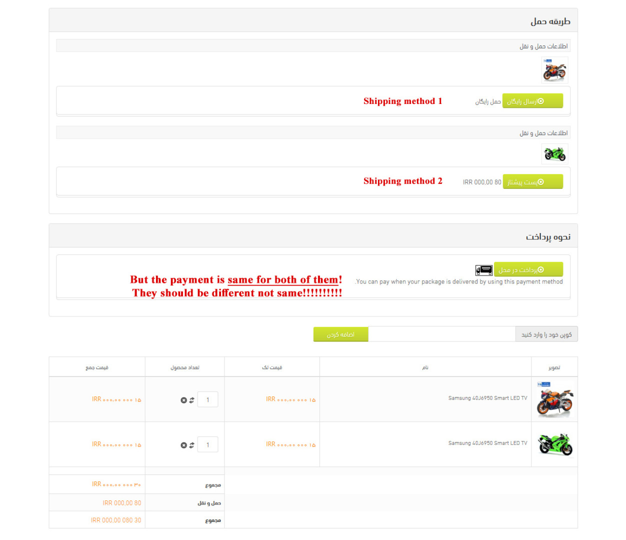 2. The second problem apears when two different products with different shipping method added to the basket! The customer will see two different shipping methods but one payment method!