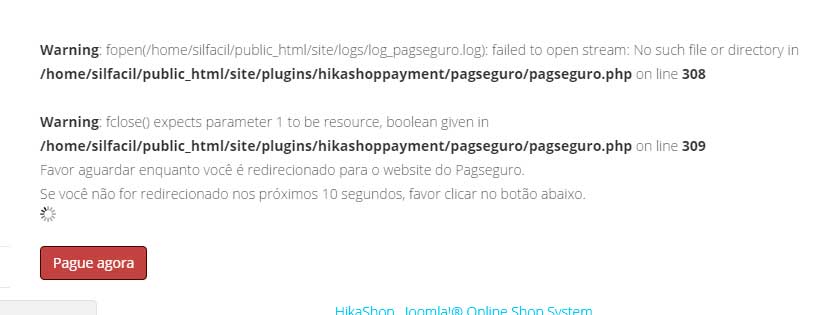 The warning messages are just warnings and not fatal errors. They just indicates that your Joomla logs folder is not writable ; so the plugin cannot create his log file into.