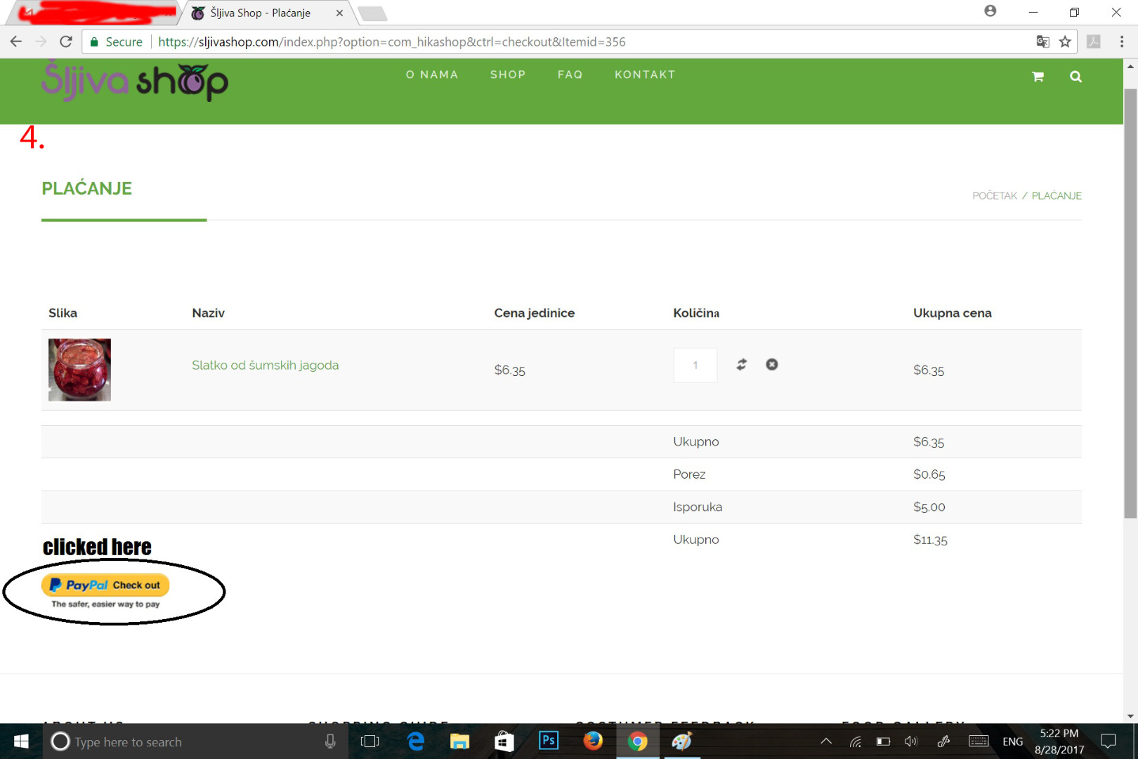 Final URL is the page from which I am redirected to PayPal.