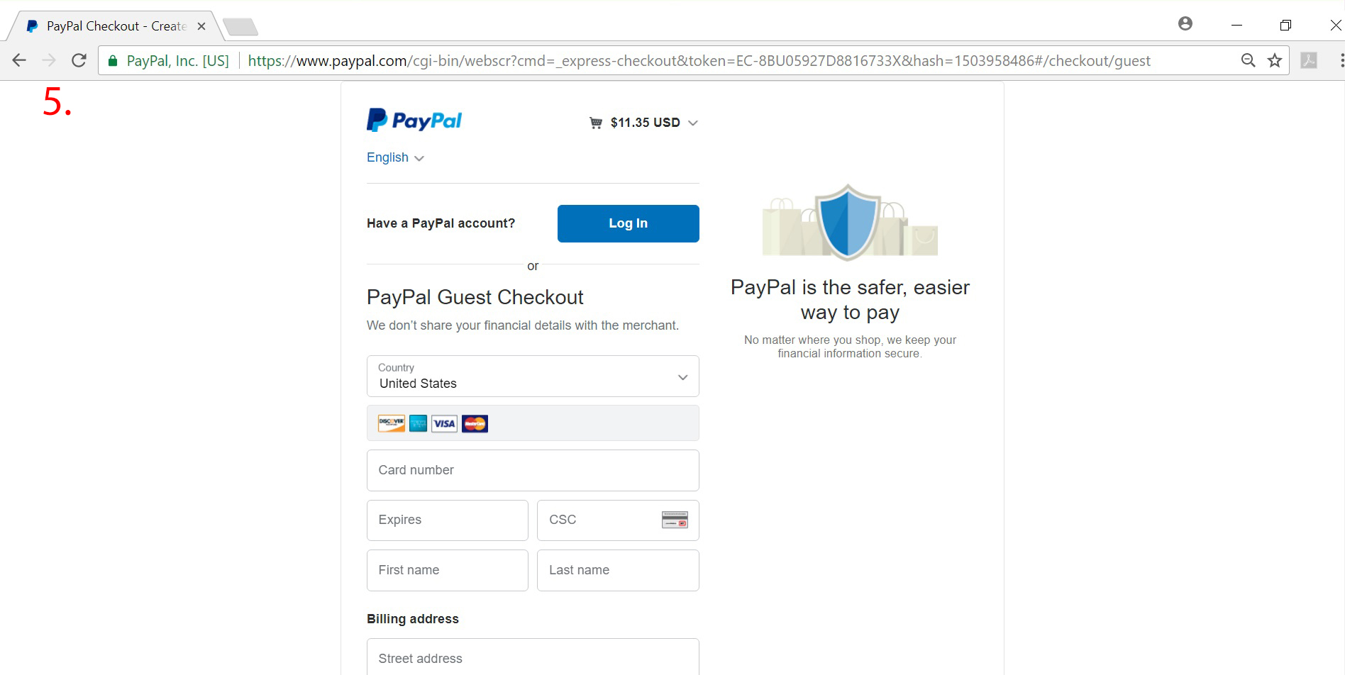 For example, above is the URL from which we were redirected to PayPal Express Checkout page.
