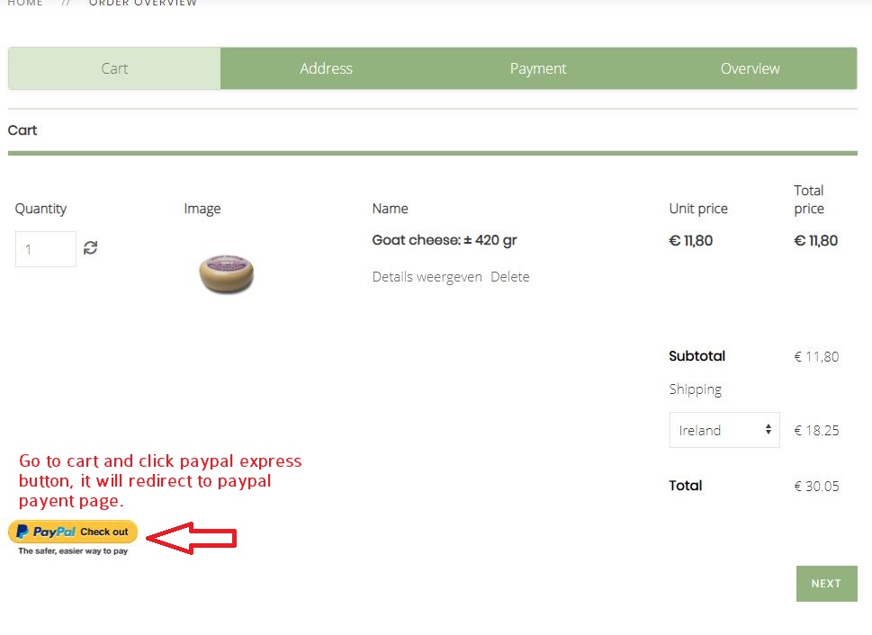 Just select any item and add to cart. Go to checkout page and select paypal express checkout.