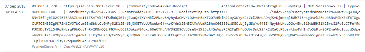 Their URL is coming back to our domain fine, but it says index.php?EncryptedParameters=