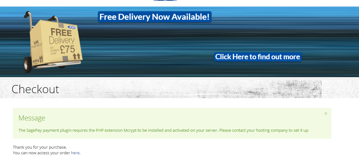"The SagePay payment plugin requires the PHP extension "mcrypt" to be installed an activated on your server. Please contact your hosting company to set it up."