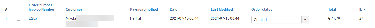 And you can see that for the "Pending status" setting of the payment method, you've configured the status "created".