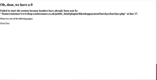 Failed to start the session because headers have already been sent by "/.../.../www/..../public_html/plugins/hikashoppayment/barclays/barclays.php" at line 17.