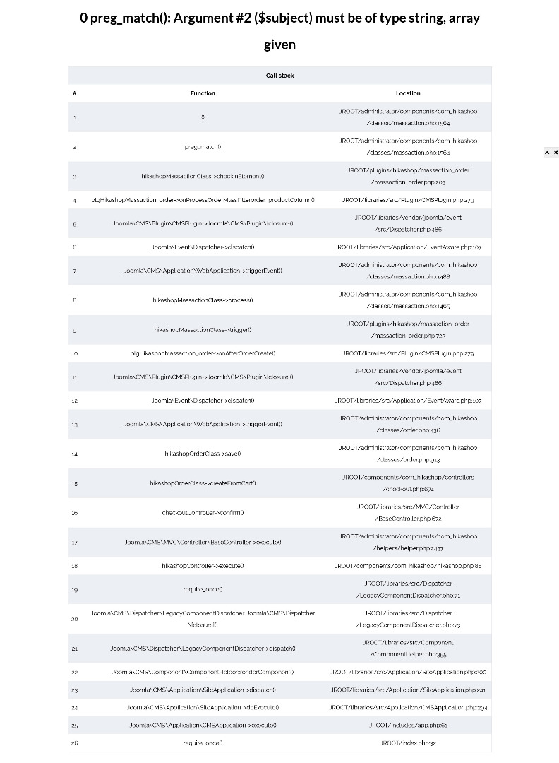 If I turn on PHP 8.0 and then turn on debug the checkout page doe render, if I click finish however I get the following