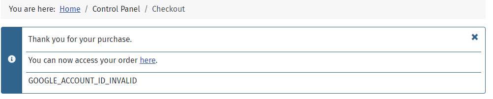 -- Error-message(debug-mod must be tuned on) -- : GOOGLE_ACCOUNT_ID_INVALID