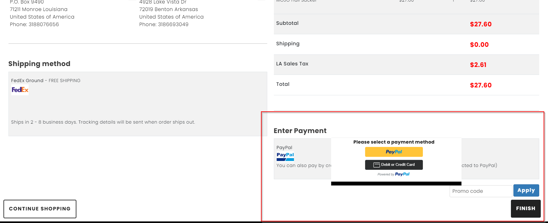 Clicking "finish" takes me to a new page with the paypal payment method selection: