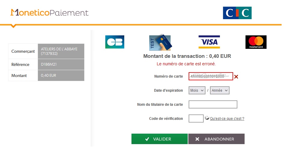 Mais quand dans Monetico, j’abandonne la commande au moment du paiement