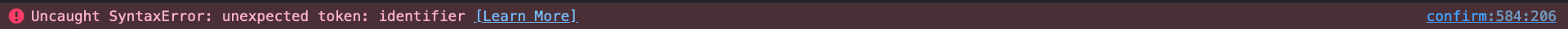 The console error is: Uncaught SyntaxError: unexpected token: identifier