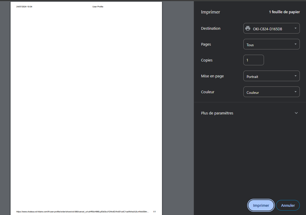 But when I click on print my invoice, the document is empty..