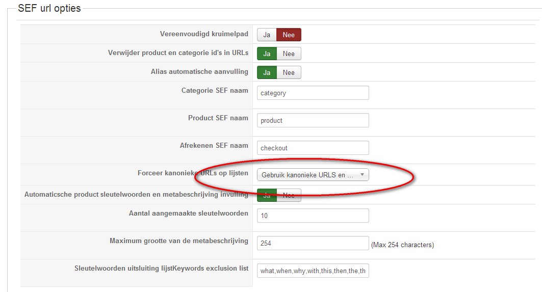 2. If you activate the "force canonical URL on listings" setting, you need to configure the "canonical URL" field of the product page for each language, not only the alias field.