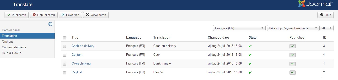 When the website is in Dutch, the categories module categories are in Dutch: