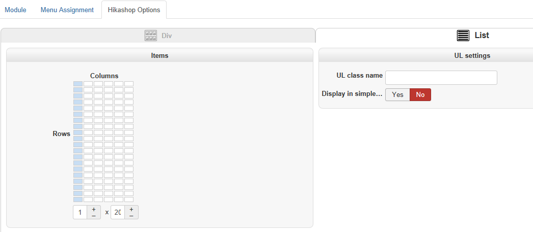Here is a screenshot of the settings from the module on our demo website in case you deleted the module instance and need to recreate it out of the "HikaShop content module" :