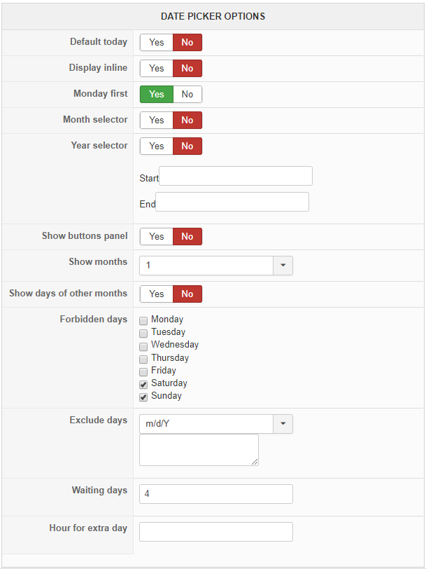 If the order Date is friday, the nex selectable date is Tuesday. So ist counting also the forbidden days.